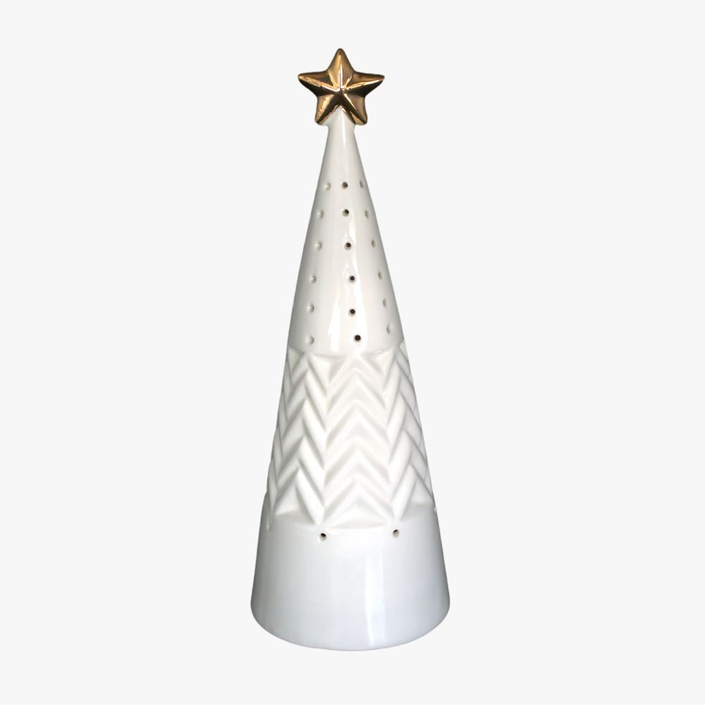 Adorno Árbol Pino con Estrella Led Cerámica 24 cm Navidad Decoración