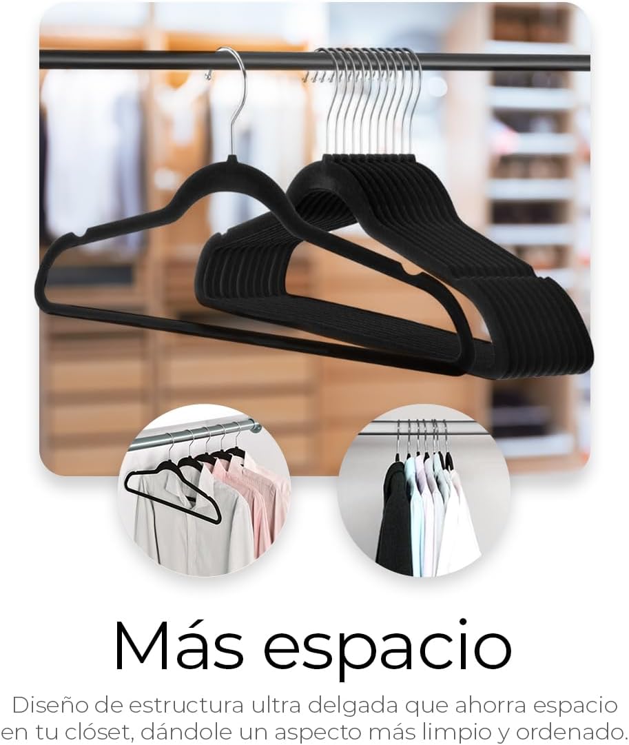Mantén tu ropa en perfecto orden con nuestros colgadores de ropa antideslizantes de terciopelo.