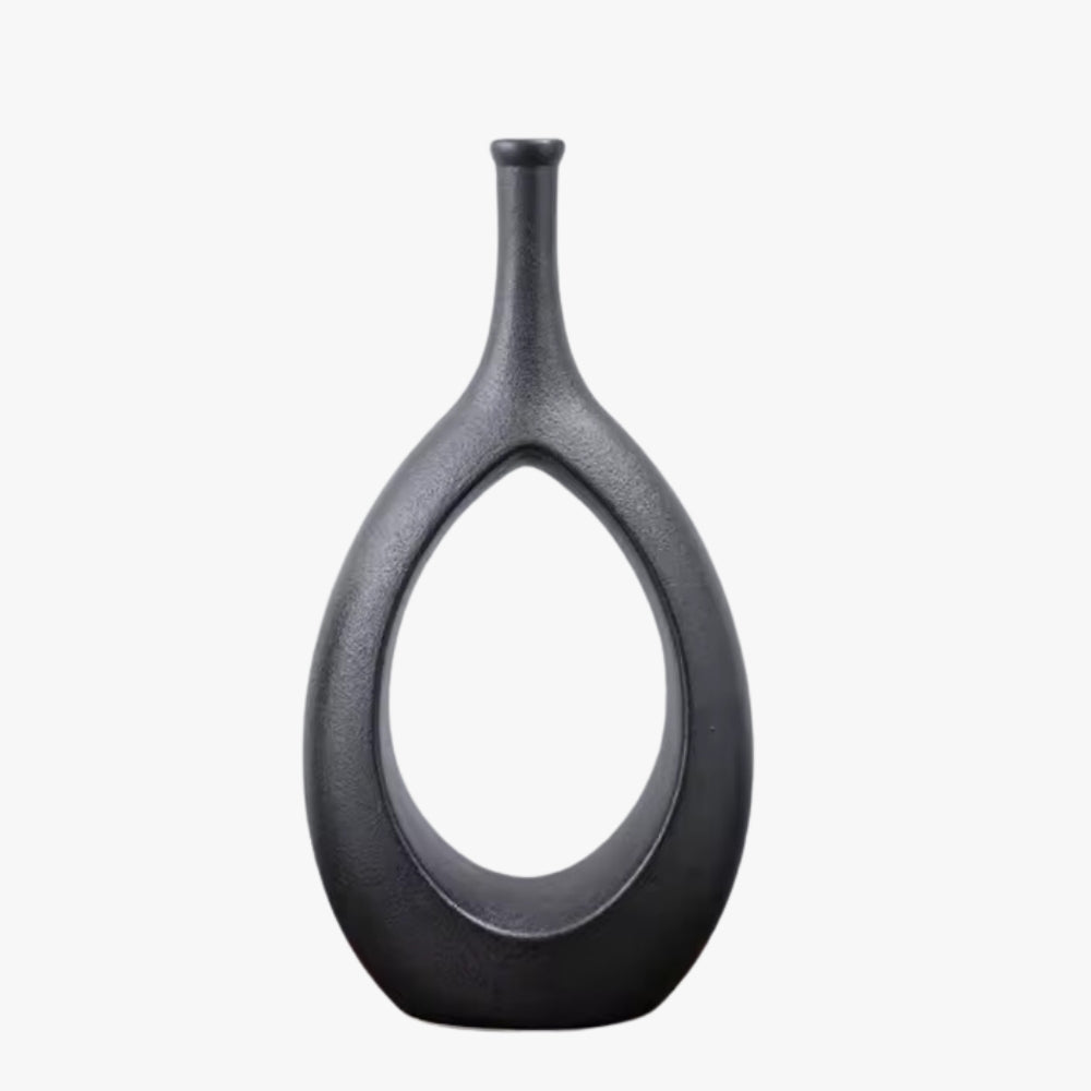 El florero de cerámica en forma de botella, con una cuerda negra, tiene una altura de 35 cm. Añade un toque moderno y elegante a tu hogar con este florero único. Perfecto para lucir tus flores favoritas o como pieza decorativa en cualquier espacio. Hecho de materiales duraderos para un uso duradero.