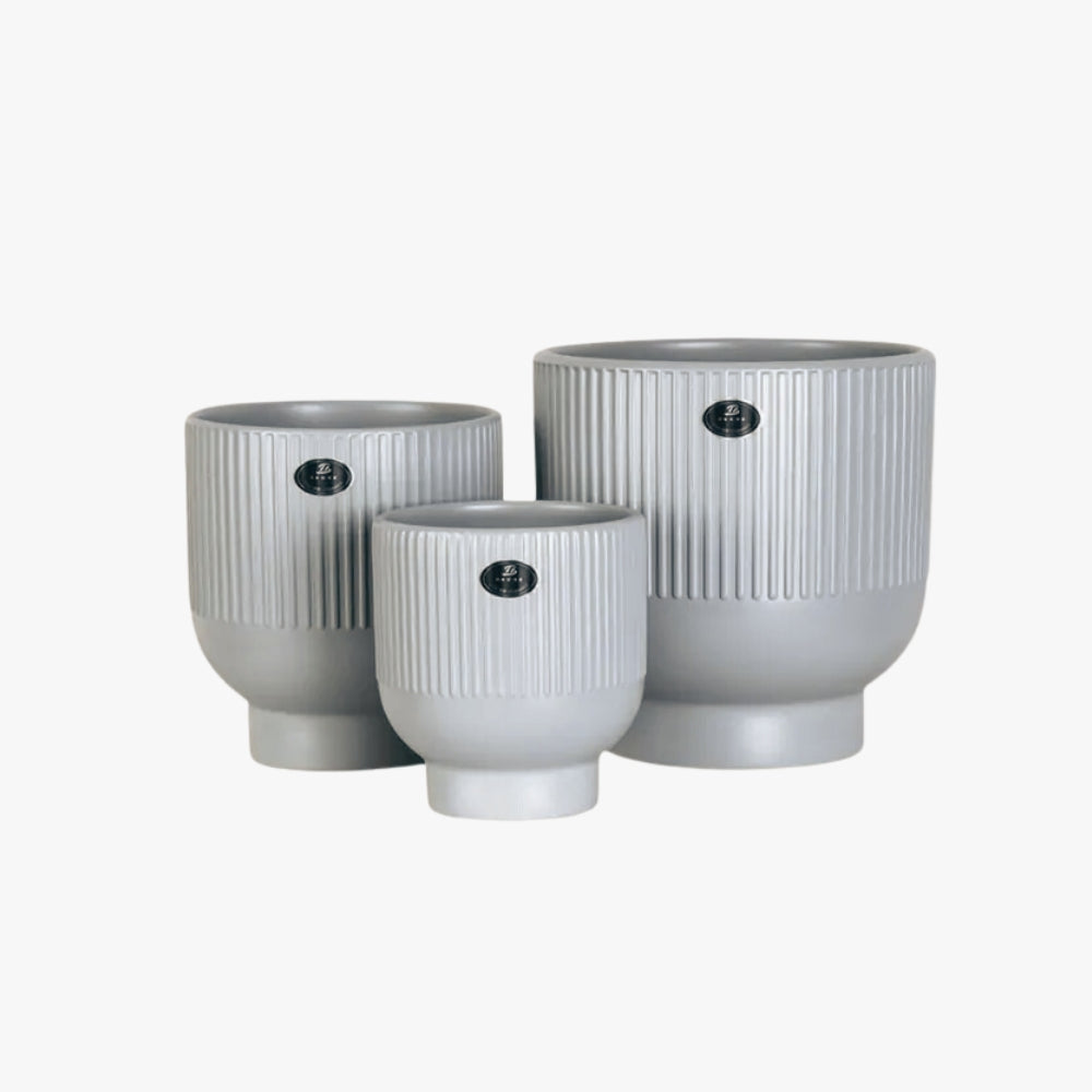 Este set de 3 maceteros de cerámica gris es perfecto para darle un toque moderno a tu hogar. Con líneas verticales que añaden un estilo único, podrás decorar tus plantas de forma elegante y sofisticada. Disfruta de la calidad y durabilidad de la cerámica mientras le das un toque de diseño a tu espacio.