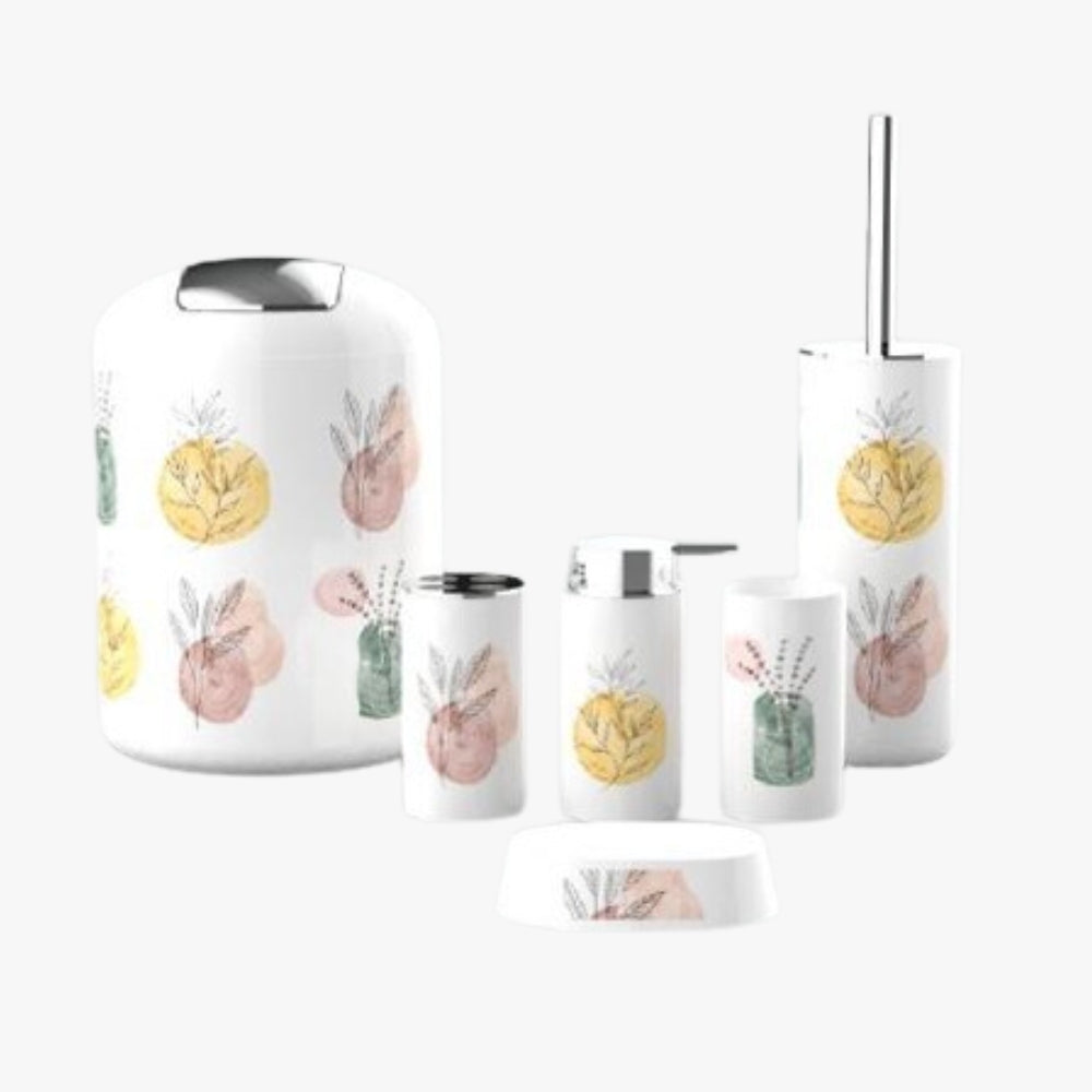 SET JUEGO DE BAÑO 6 PIEZAS CEPILLO LAVADO Y ALMACENAJE BLANCO
