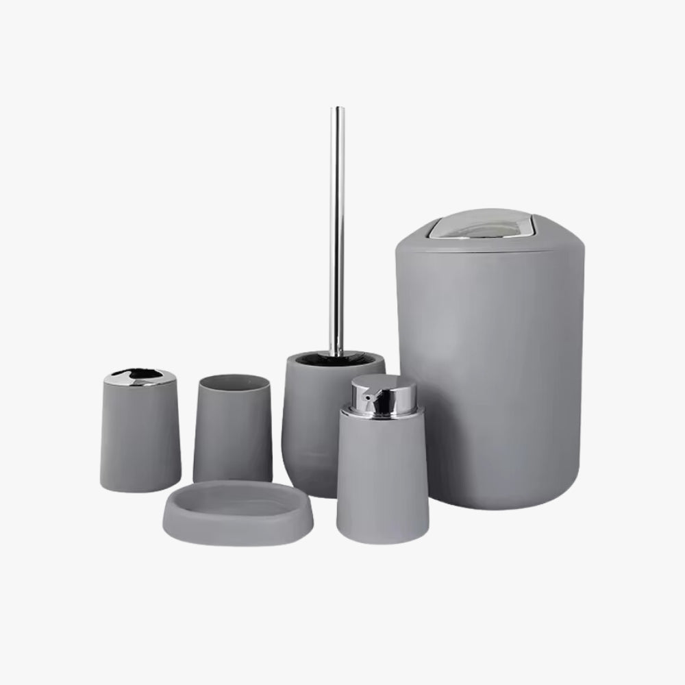 SET JUEGO DE BAÑO 6 PIEZAS CEPILLO LAVADO Y ALMACENAJE GRIS