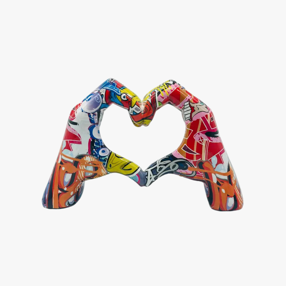 La figura está pintada en un estilo grafiti vibrante, añadiendo un toque moderno y artístico a su diseño. Perfecta para decorar tu hogar, oficina o como un regalo significativo para esa persona especial.
