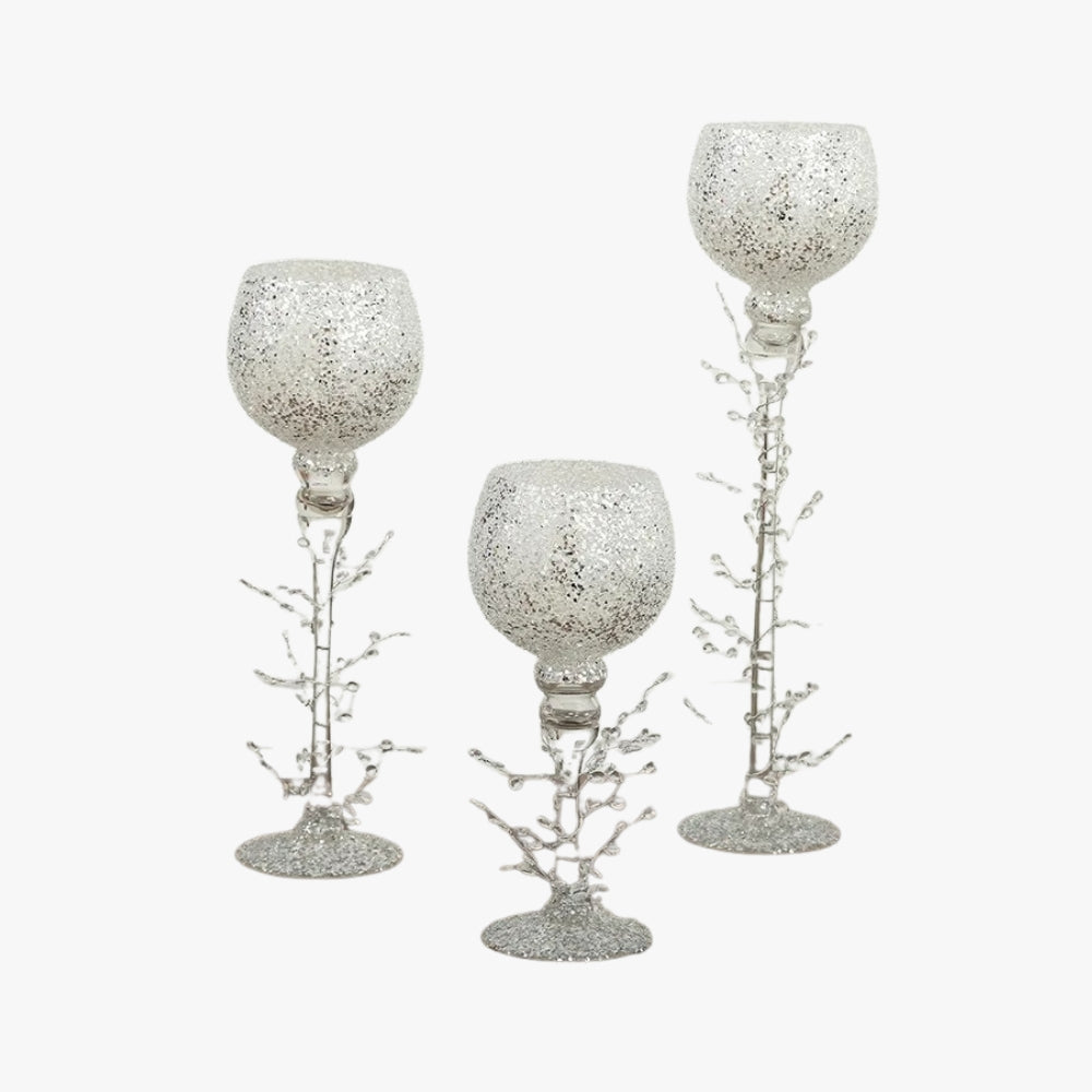 Set 3 Copas Porta Velas Adorno Figuras Elegantes Plateado Grande