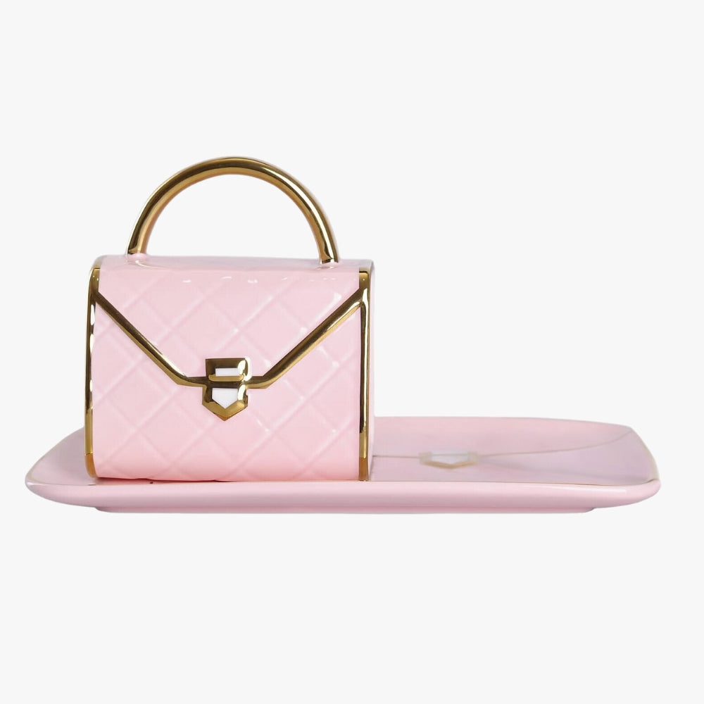 Set de 2 Tazas de Café y Platillos Estilo Bolso de Mujer ROSA