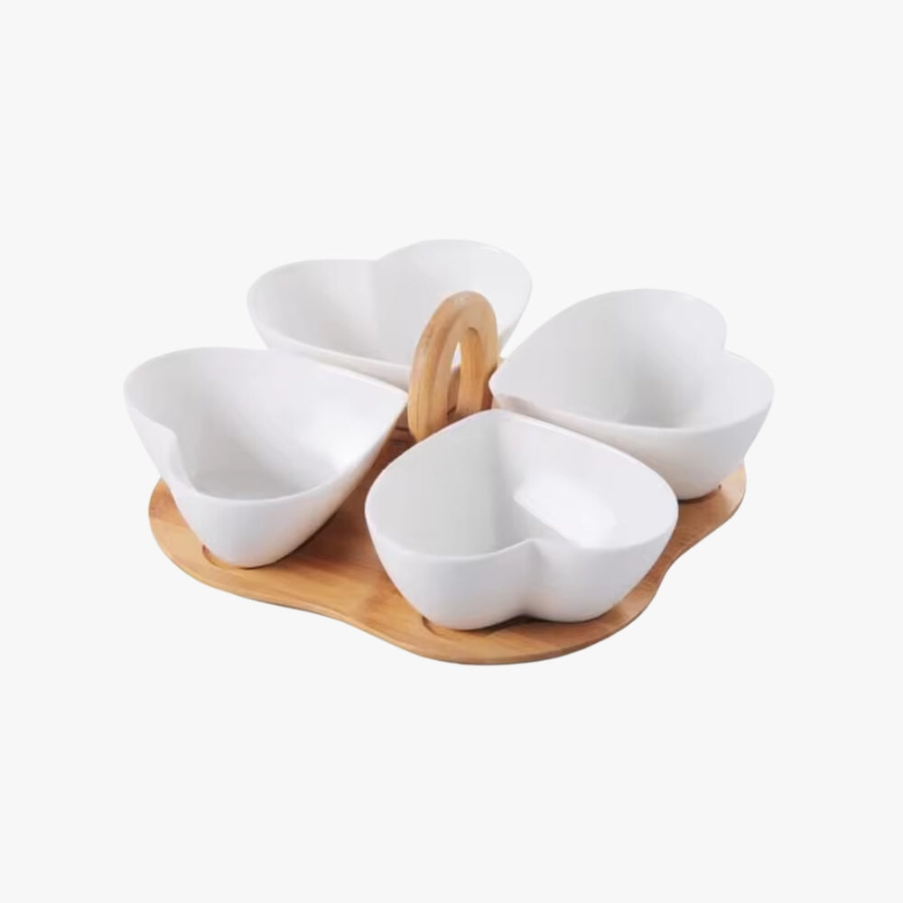 Tabla Aperitivos Redonda 4 Corazones Pocillos Picoteo