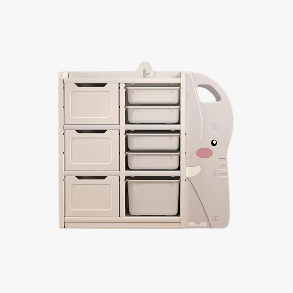 Fácil acceso a juguetes y libros: mantén los juguetes y libros de tu hijo organizados con el organizador de almacenamiento de juguetes, con 1 cubo extraíble grande, 4 cubos pequeños, estantes medio cubiertos y estantes de exhibición, y un divertido diseño de elefante. Es perfecto para salas de juegos, salas de estudio, dormitorios y salas de estar.