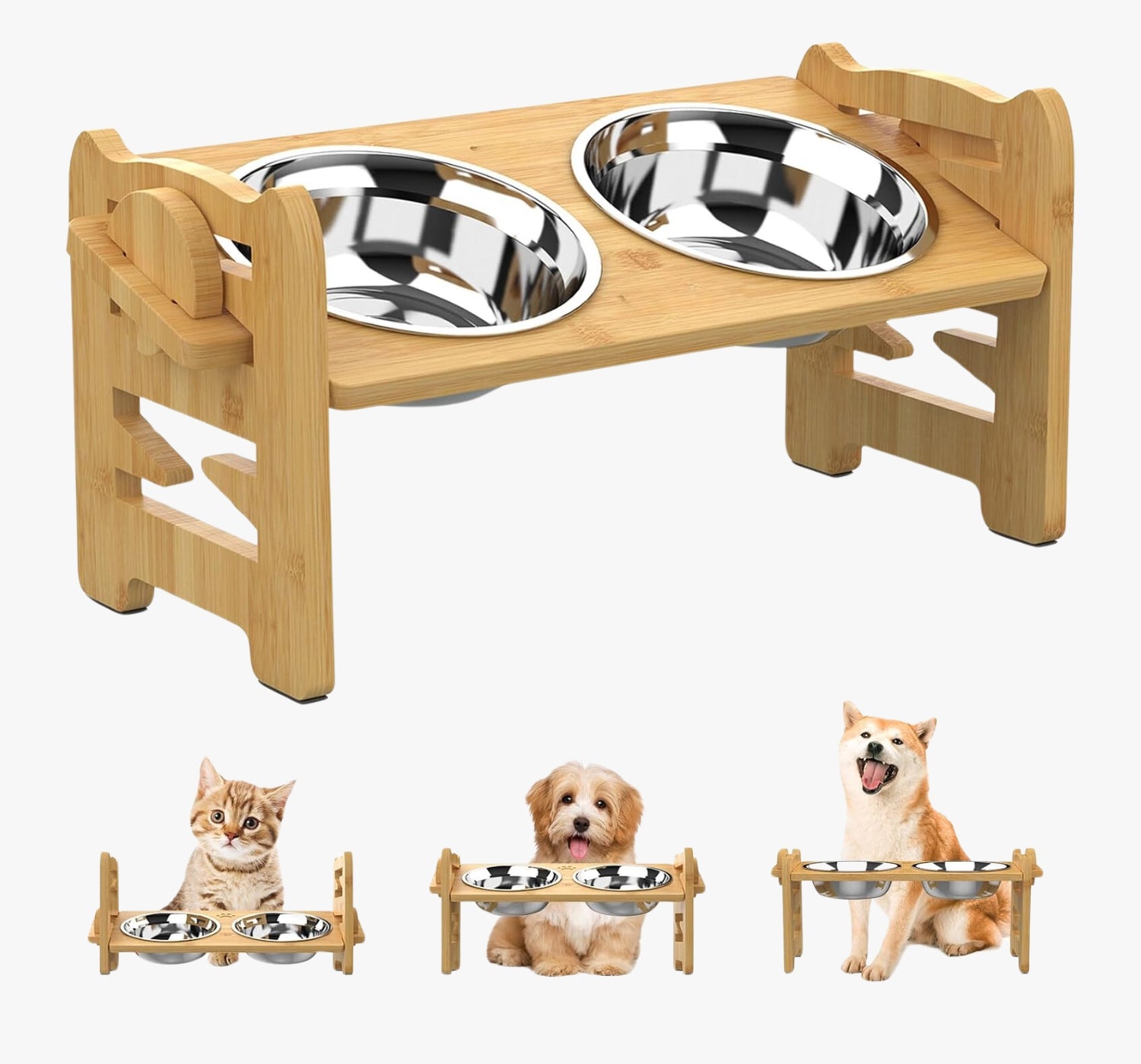 Comedero Elevado Para Perro Gatos Perros Mascotas Bebedero Madera