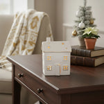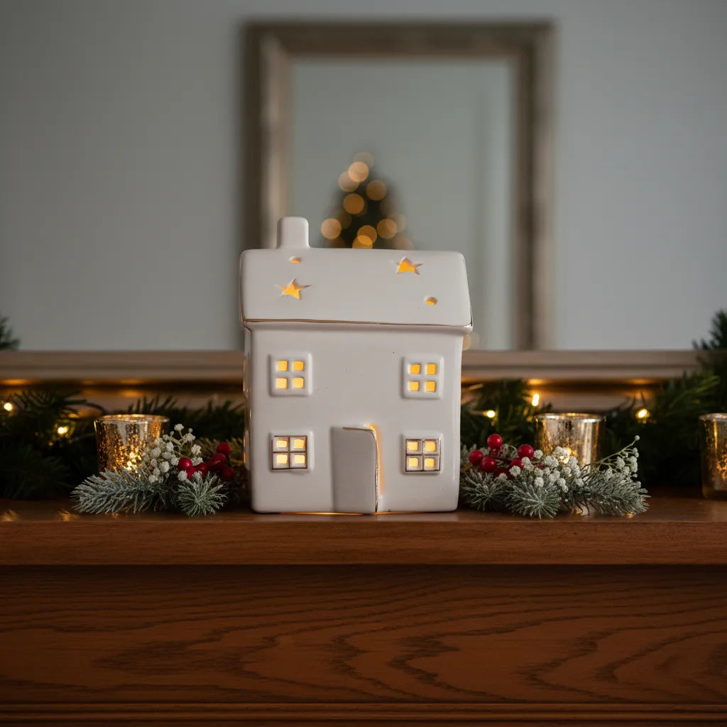 Ilumina tus espacios con esta hermosa Casa de Cerámica con luz LED, una pieza decorativa elegante y encantadora que aporta calidez instantánea a tu hogar. Su diseño minimalista y su luz cálida crean un ambiente acogedor, perfecto para noches navideñas y rincones especiales.