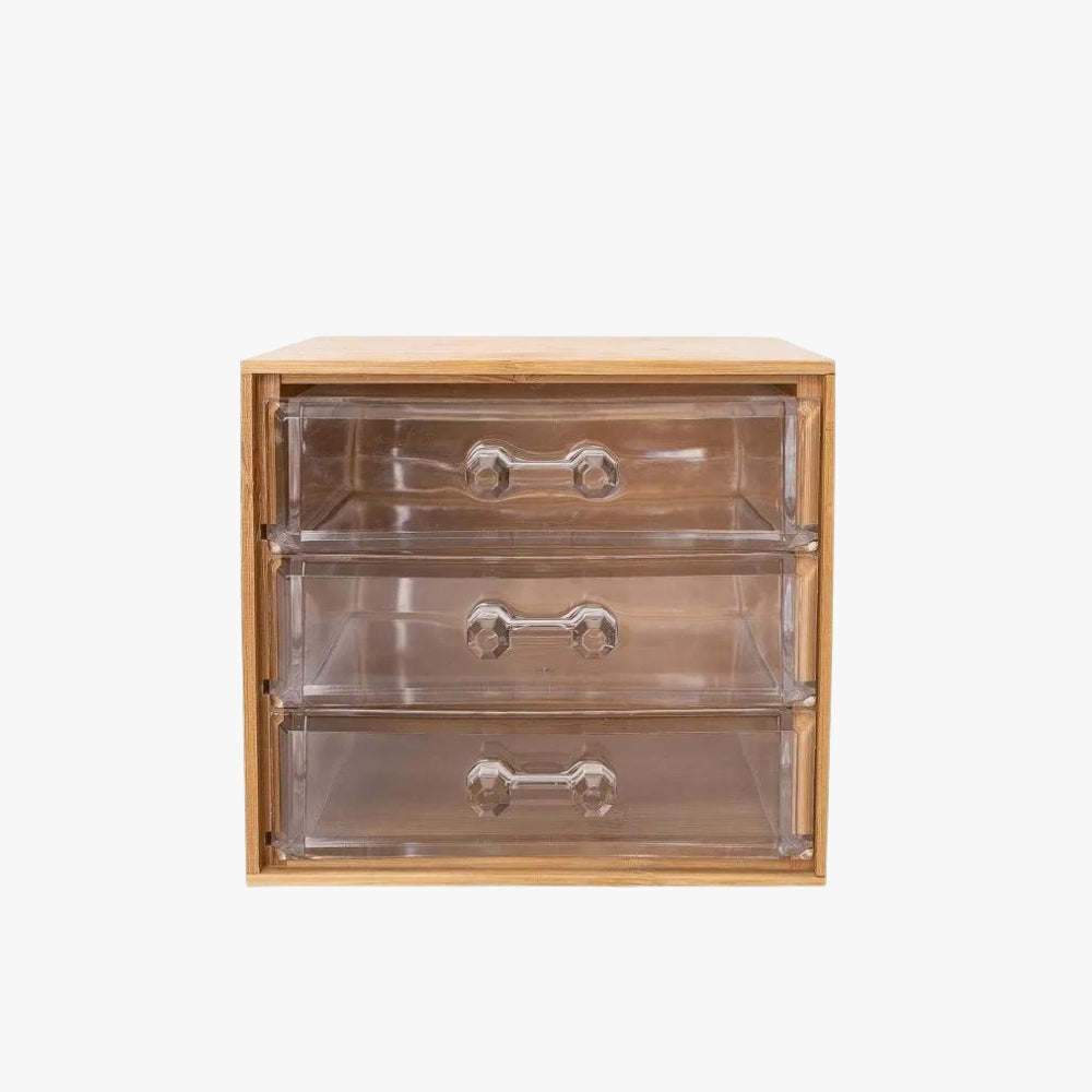 Este organizador de cosméticos de bambú tiene 3 espacios para almacenar y ordenar tus productos de belleza. El bambú es un material resistente y sostenible, por lo que podrás tener un producto duradero y amigable con el medioambiente. Mantén tus cosméticos en orden y al alcance con este práctico organizador.
