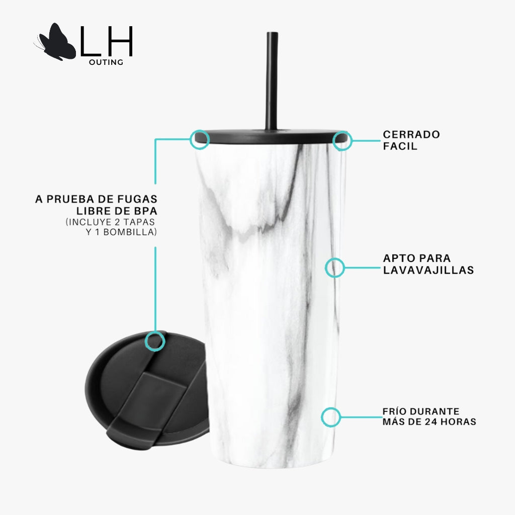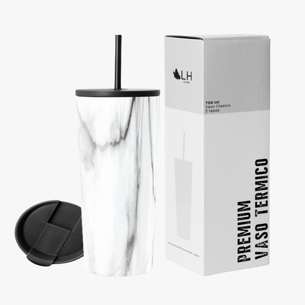Vaso Térmico 700ml + 2 Tapas Marmoleado