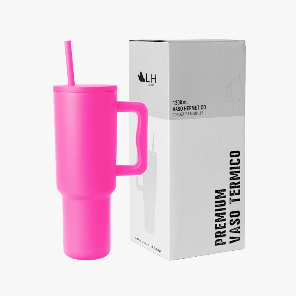 Con 1200 ml, este vaso es perfecto para largas jornadas laborales, viajes, o aventuras al aire libre.