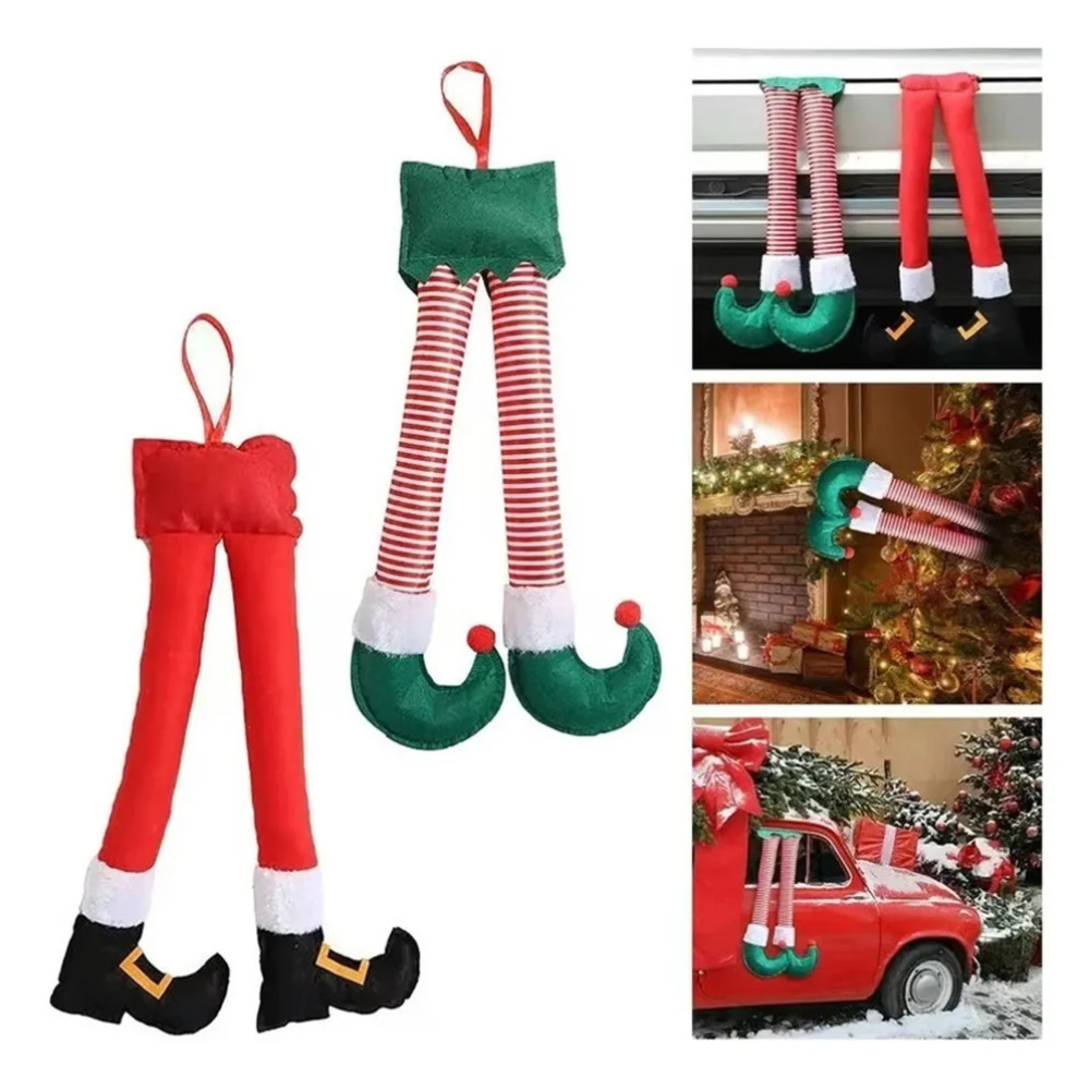 Estos Adornos Navideños para Maletero harán reír a todos con sus piernas colgantes y divertidas.