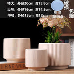 Set 3 Macetero Beige Maceta De Cerámica Líneas Verticales