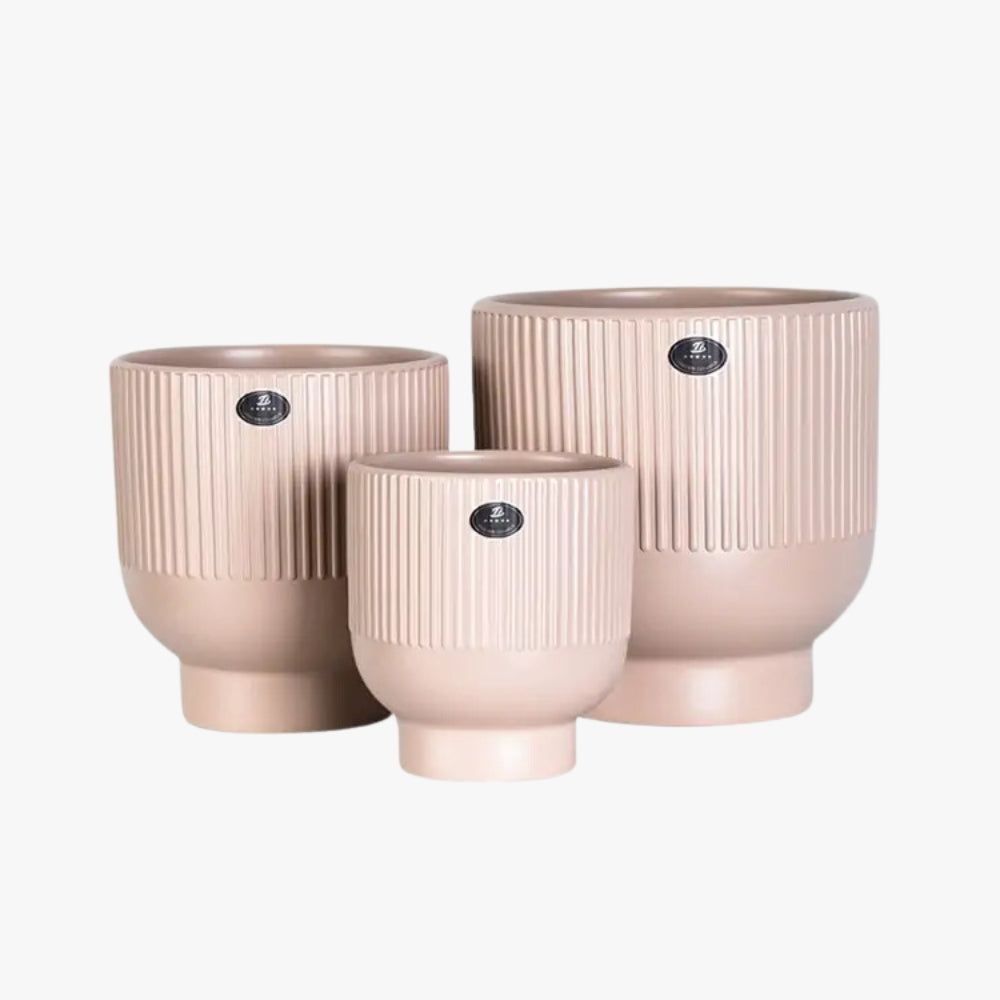 Estas macetas de cerámica beige no solo decorarán tu hogar con sus líneas verticales elegantes, sino que también te ayudarán a mantener tus plantas sanas y felices en su nuevo hogar. Con este conjunto de tres macetas, podrás darle un toque moderno a tu jardín o interior.
