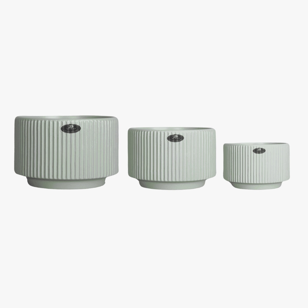 Set 3 Macetero Verde Maceta De Cerámica Líneas Verticales