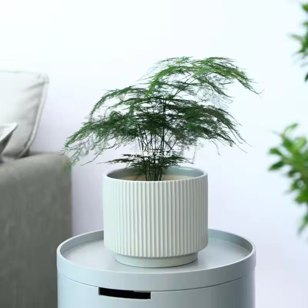 Este set de 3 maceteros verdes son ideales para dar un toque de frescura y elegancia a tu hogar. Hechos de cerámica con líneas verticales, estos maceteros son duraderos y resistentes. Perfectos para plantas de interior como suculentas o cactus, y también pueden ser usados en exteriores para decorar tu jardín o balcón.